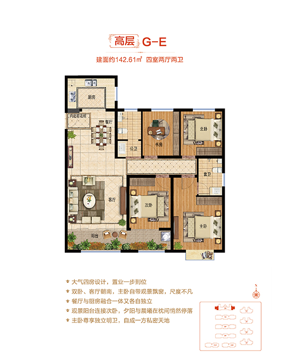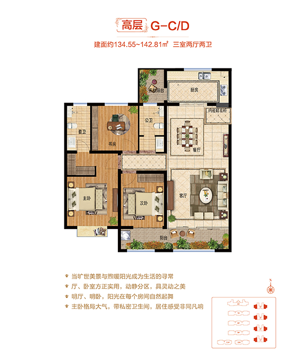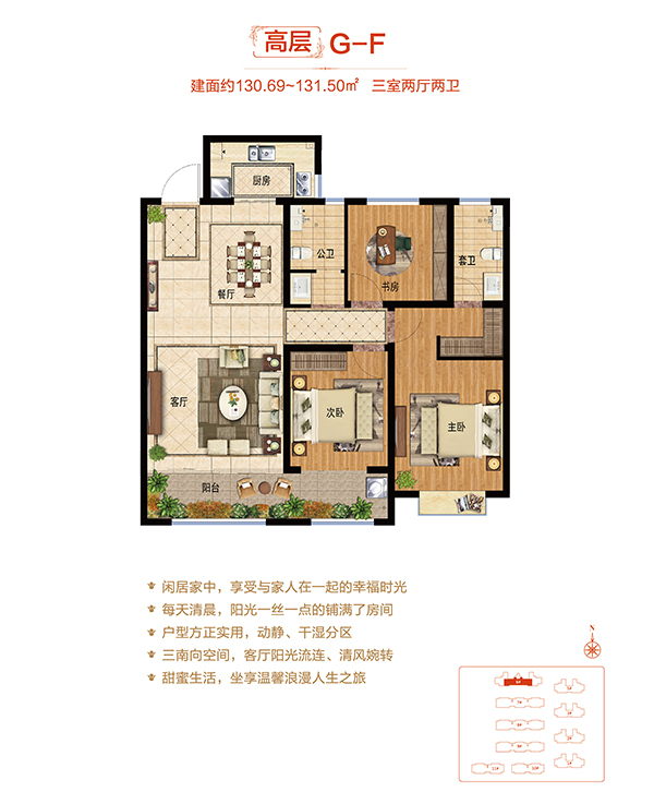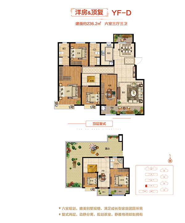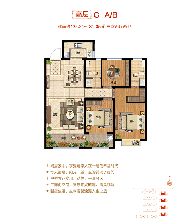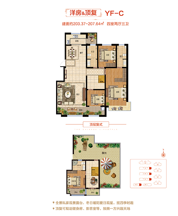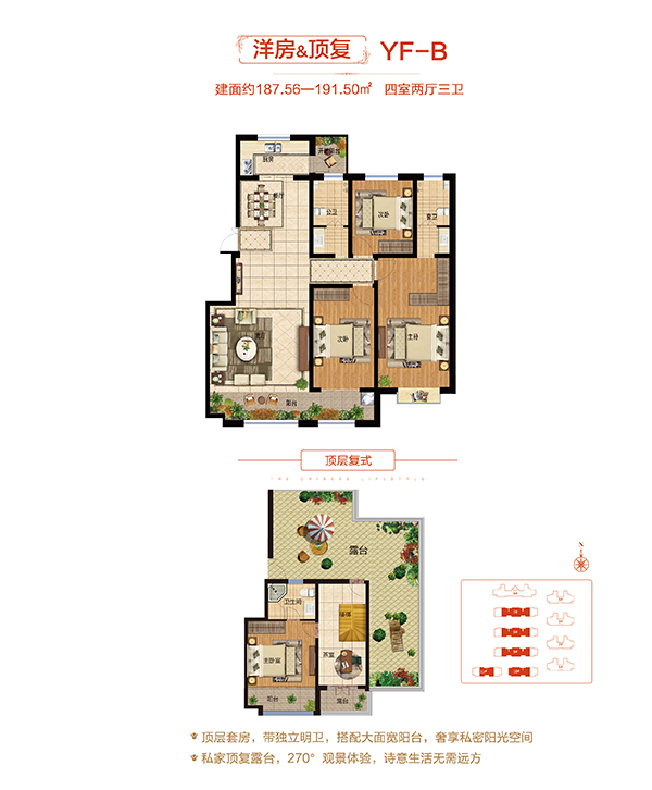 洋房户型面积125-220m2,高层户型面积120-143m2