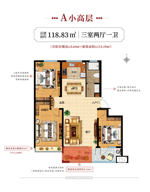 118.83m² 三室两厅一卫